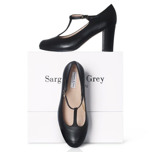 Lorna-Extra Wide Fit T-Bar Heels - Black Leather