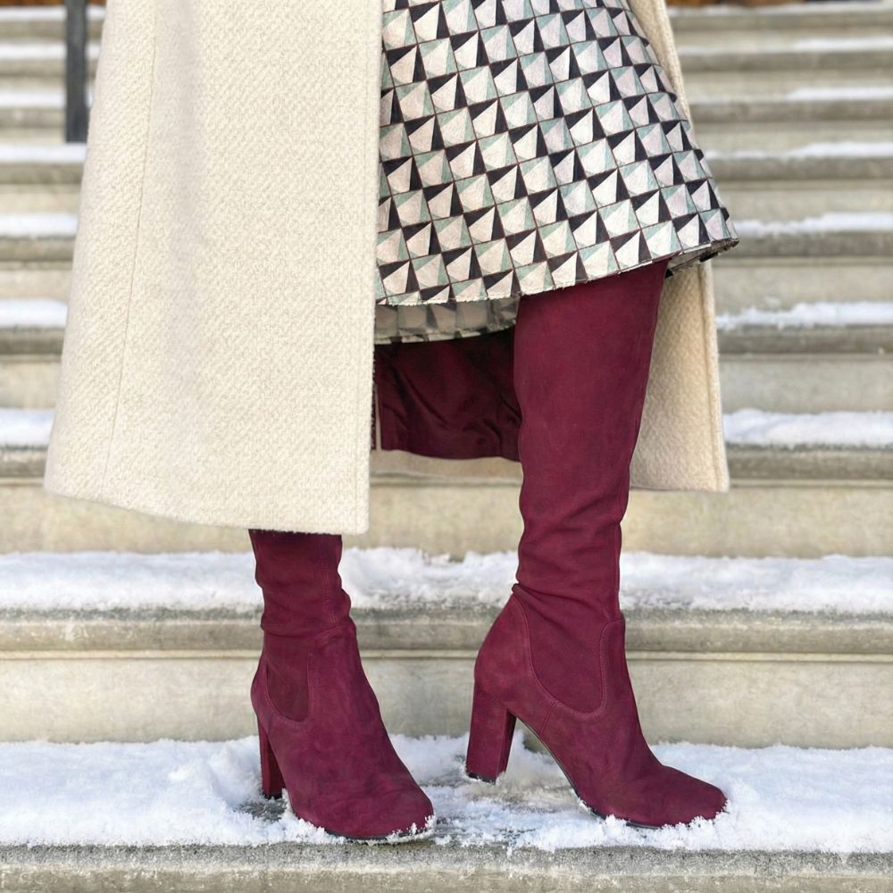 Crafted from soft claret suede and designed with an EEE extra wide-fitting toe box and a wider-fit stretch suede sock, these luxurious knee boots are a must-have for your winter wardrobe. Enjoy the fabulous style of these boots, with a block heel for reliable support and a memory foam padded insole for extra cushioning. Perfect for cold weather, these boots are an indispensable addition to any collection.