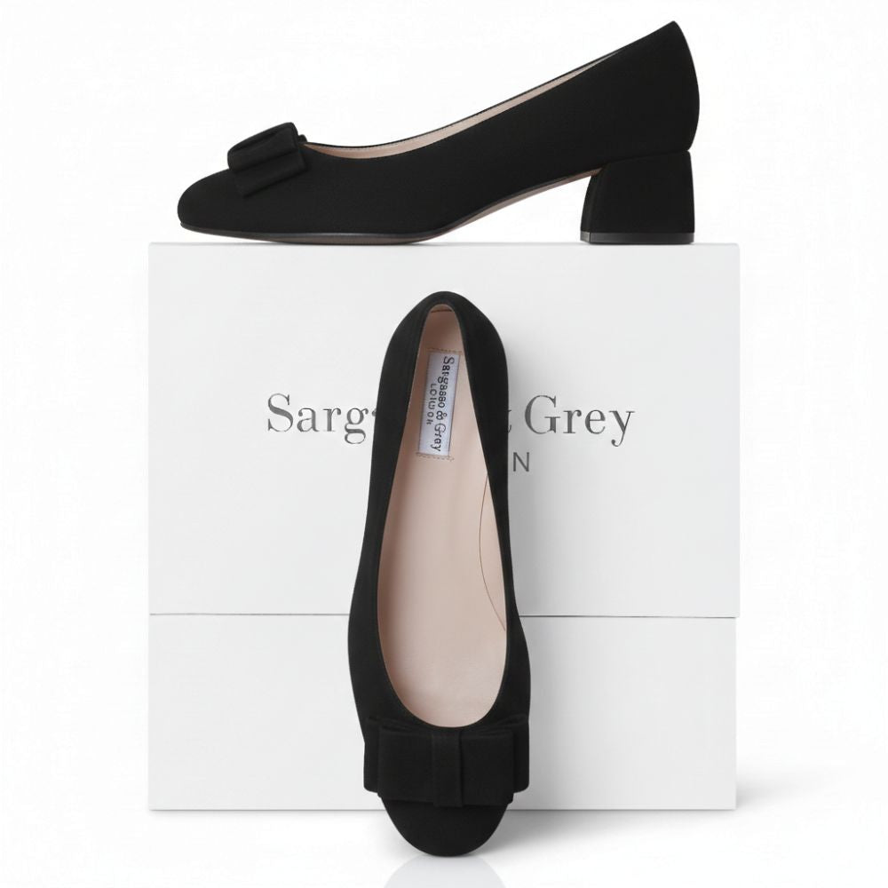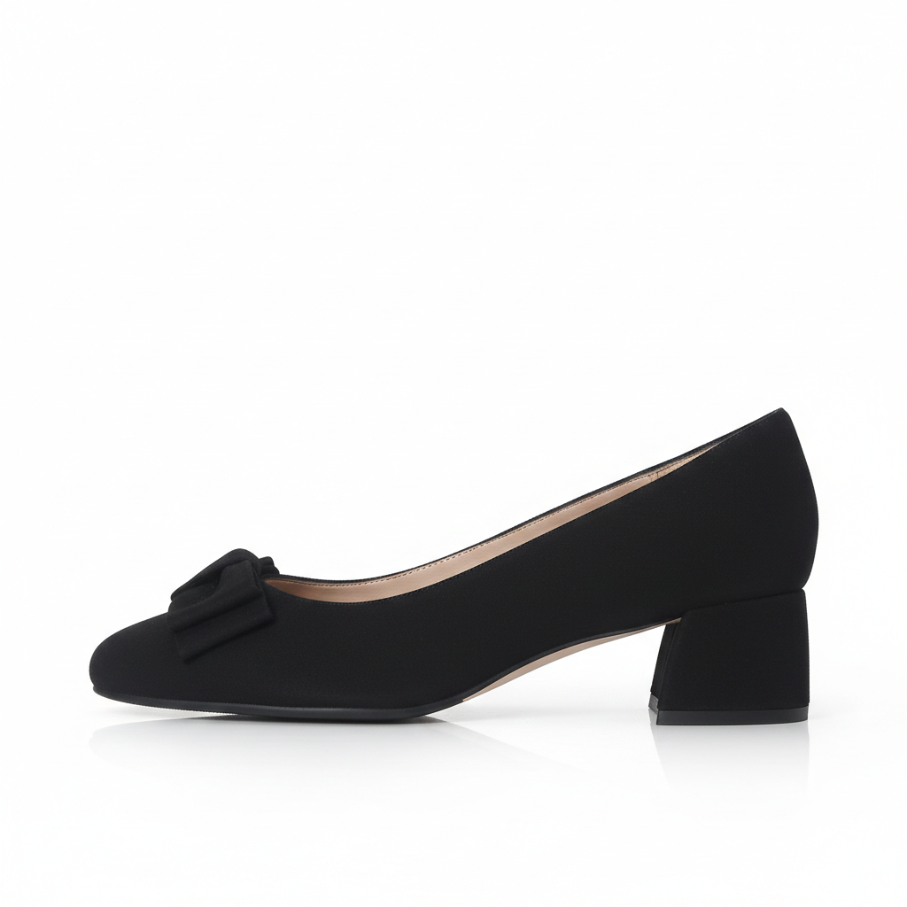 Introducing Suzie, an exquisitely crafted square-toe court shoe designed with wide-fitting comfort in mind. This refined heel seamlessly accommodates bunions and sensitive areas with integrated Smooth & Soothe foam protection, whilst a delicate bow detail adds understated sophistication. The dual PORON® memory foam insoles deliver exceptional cushioning beneath the ball of the foot, transforming heel-wearing into a genuinely comfortable experience. Perfect for both professional settings and formal occasions, Suzie proves that style need never compromise on comfort.