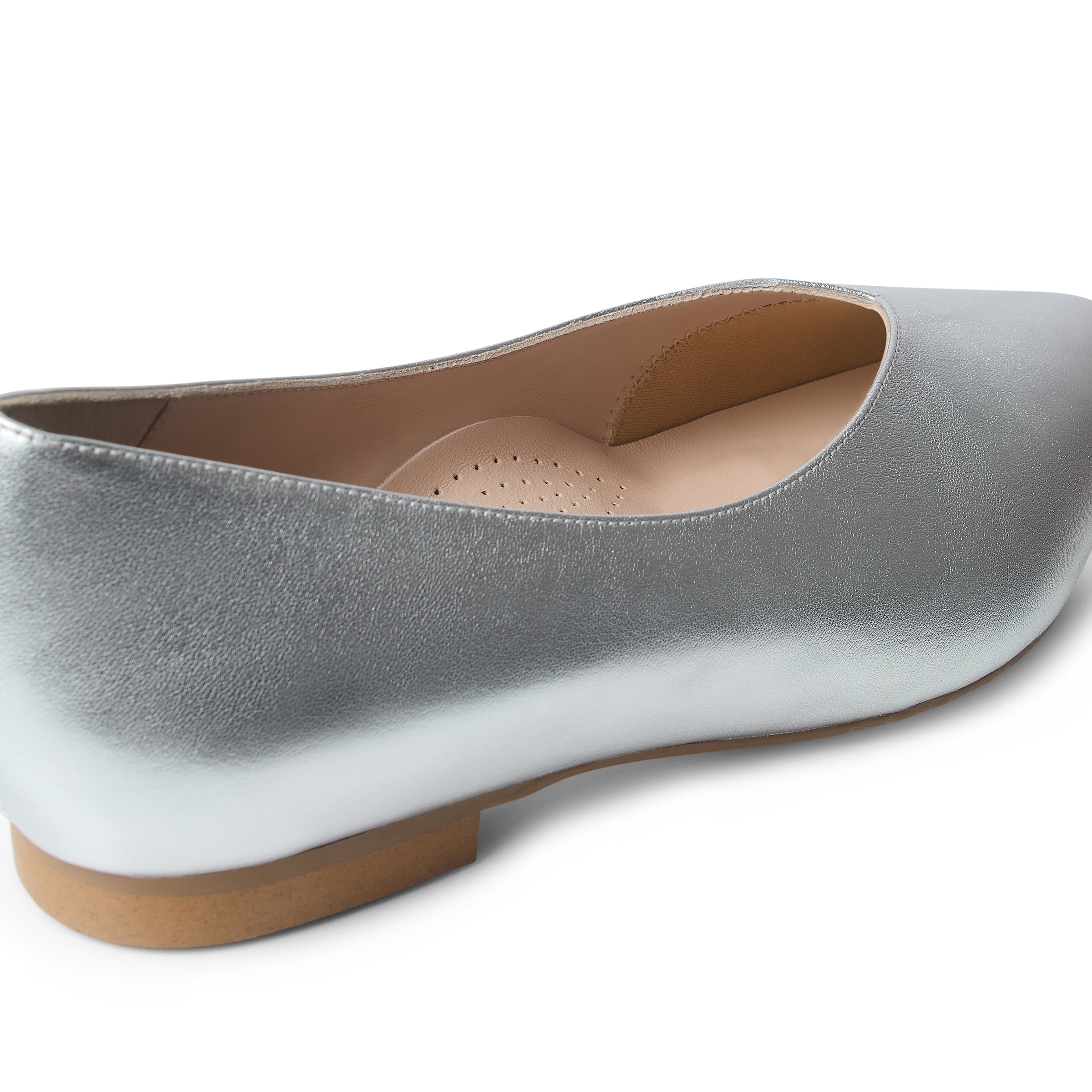 Silver Leather Extra Wide Fit Flats