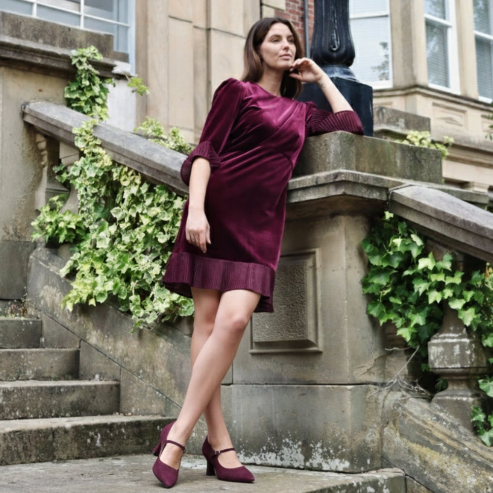 Elsa Wide Fit Court Shoe – Burgundy Suede