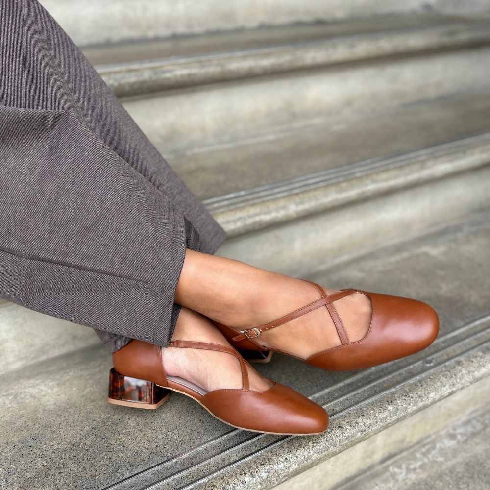 Fliss Wide Fit Square Toe Court - Brown Leather