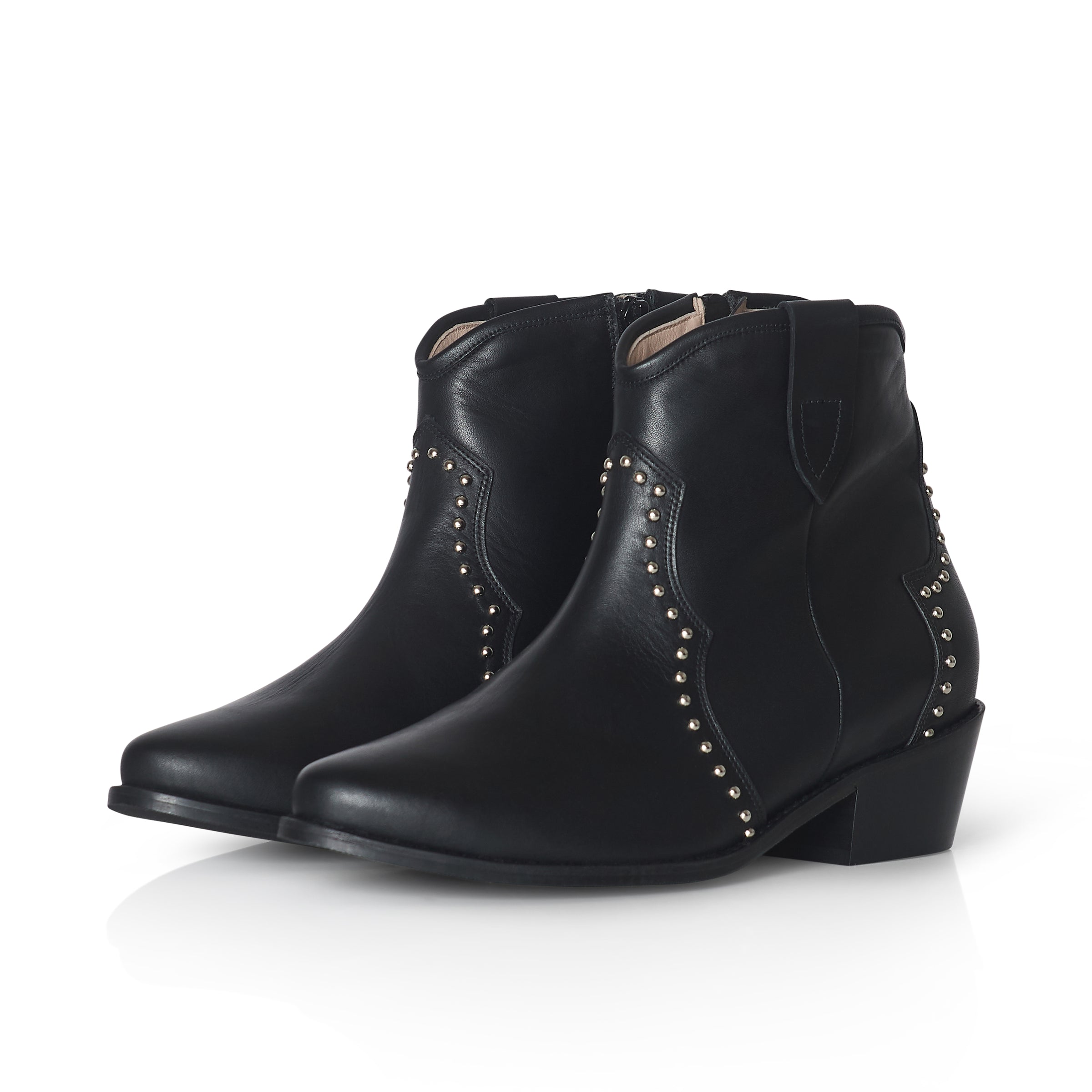 Jago Extra-Wide Fit Cowboy Boots - Black Studded Leather