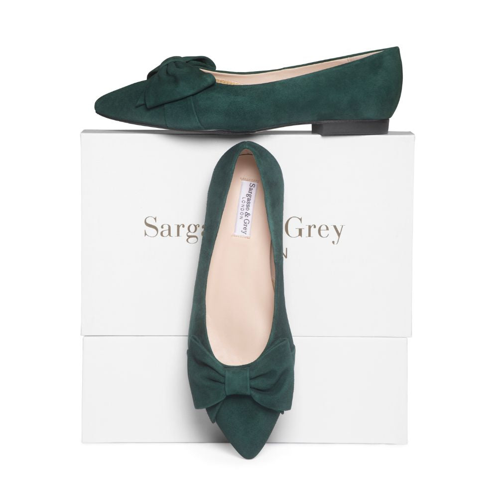 Dark Green Suede Extra Wide Fit Flat Shoes With Bow