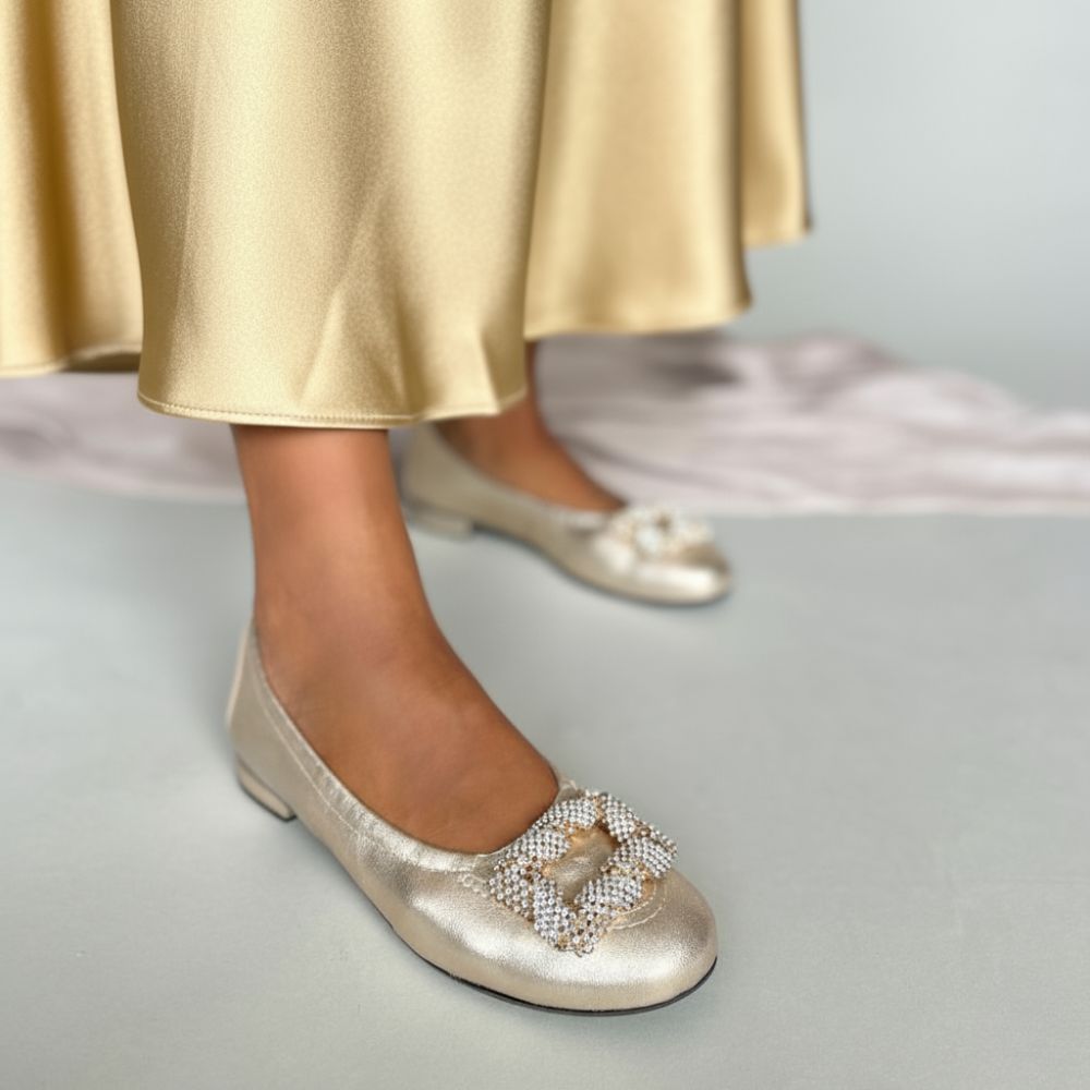 Saffron Wide Fit Ballet Flats - Gold Stretch Leather