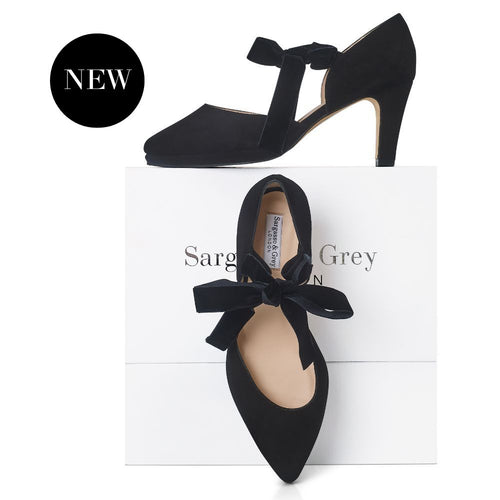 Tess Extra-Wide Fit Heels With Pearl Bow - Black Suede