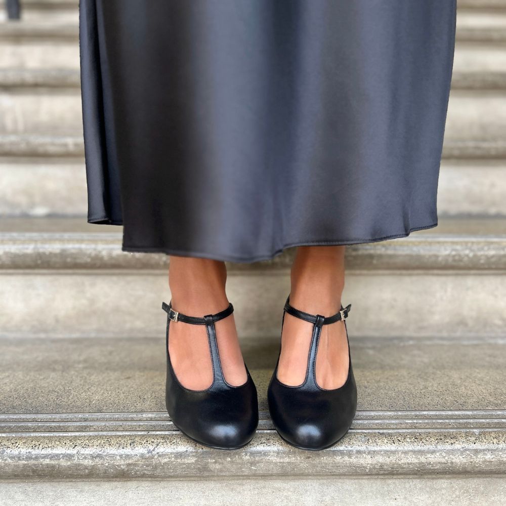 Lorna-Extra Wide Fit T-Bar Heels - Black Leather