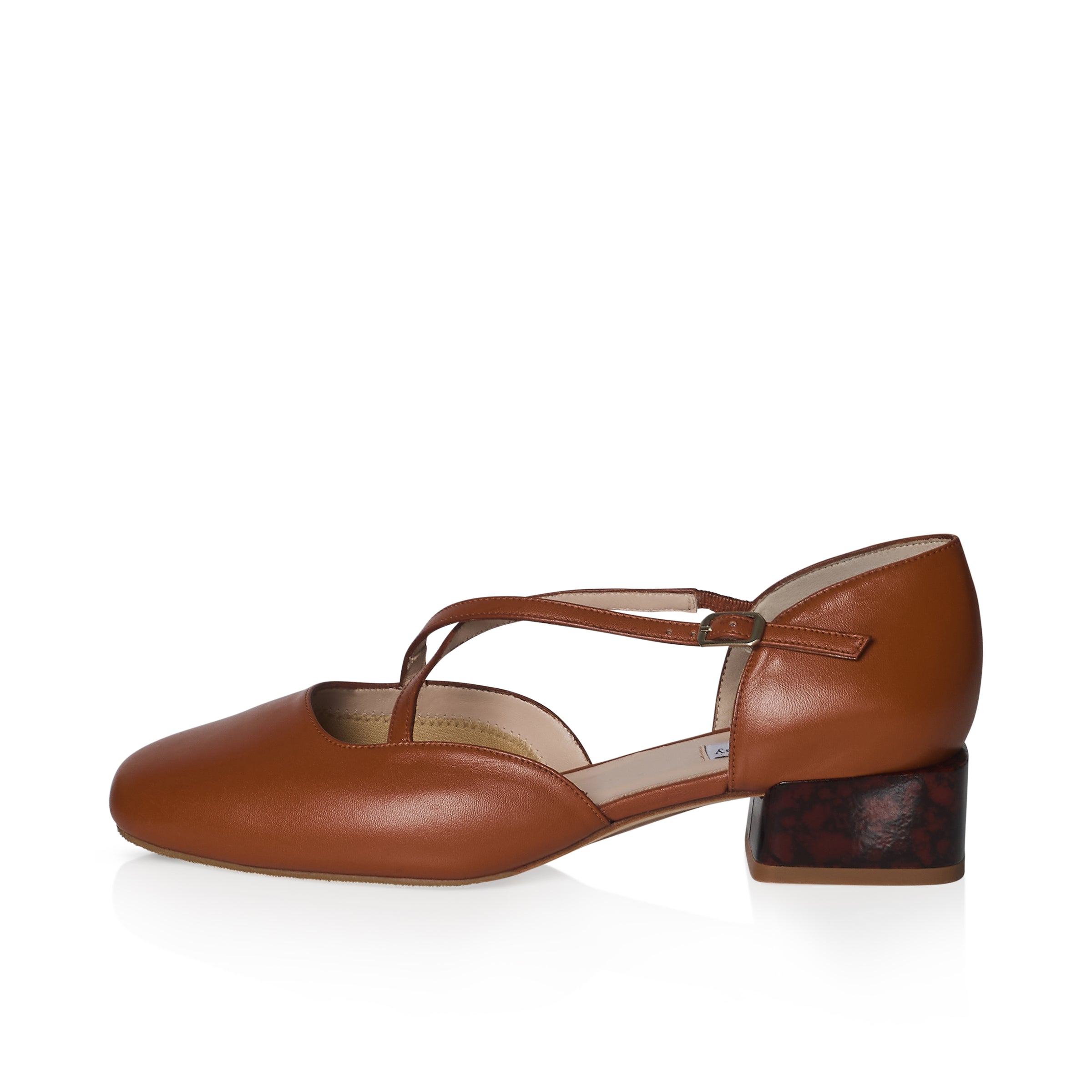 Fliss Wide Fit Square Toe Court - Brown Leather