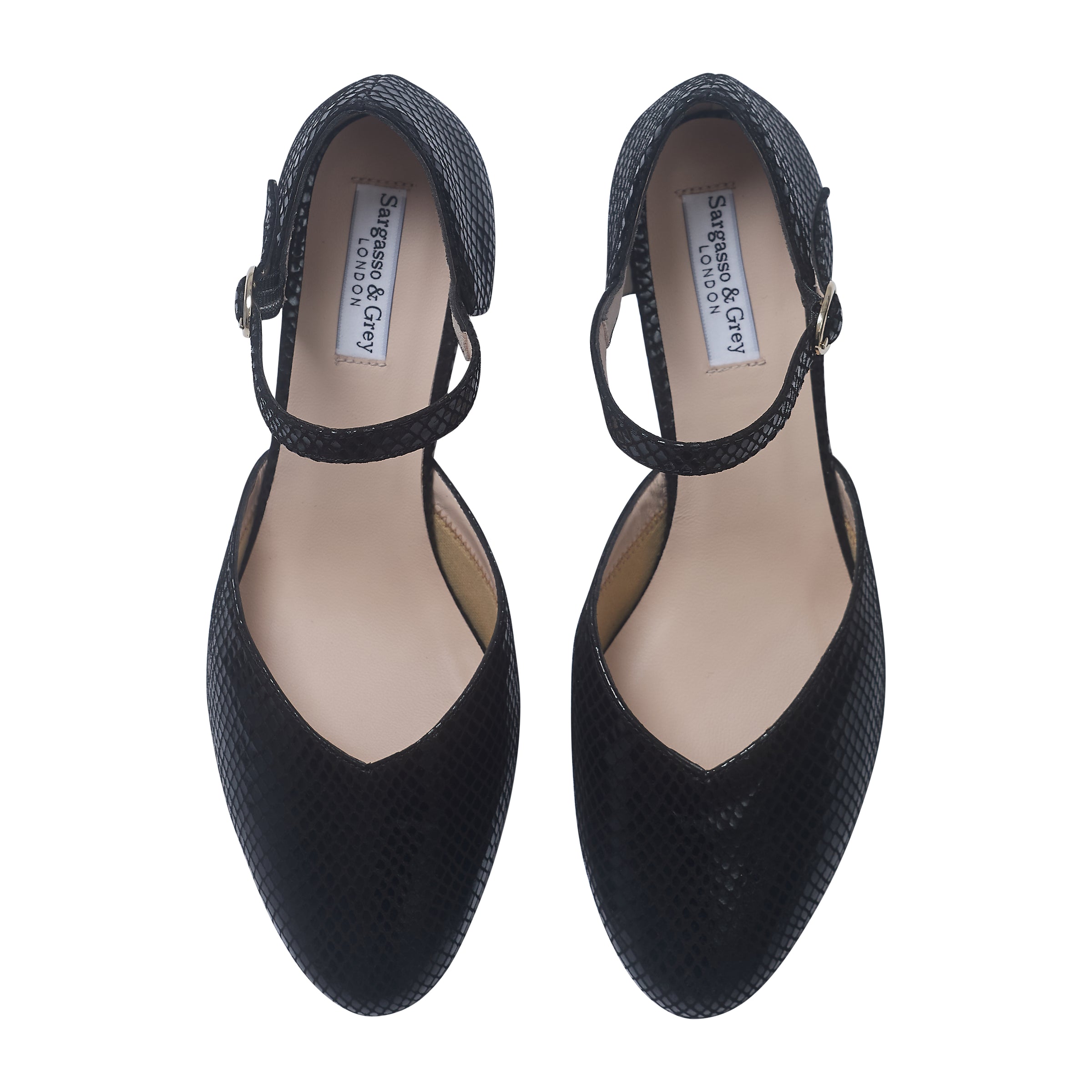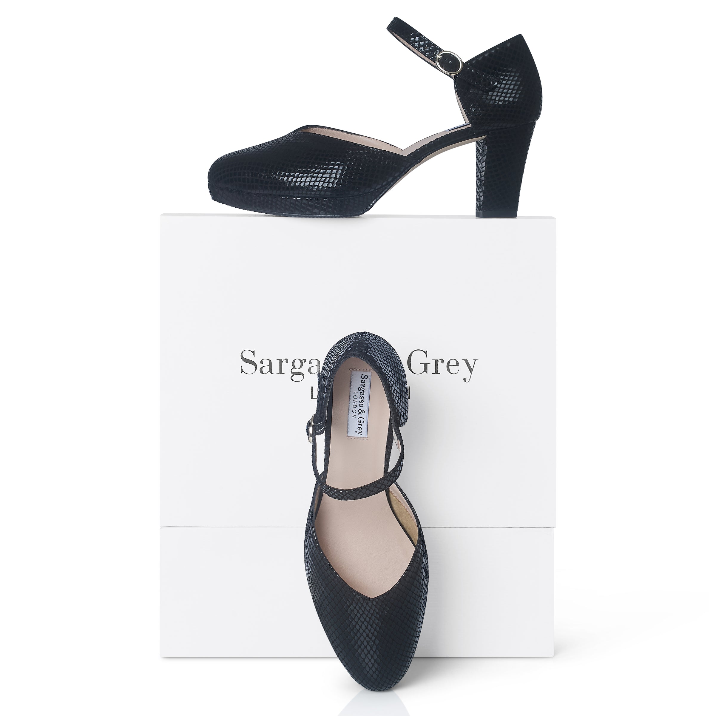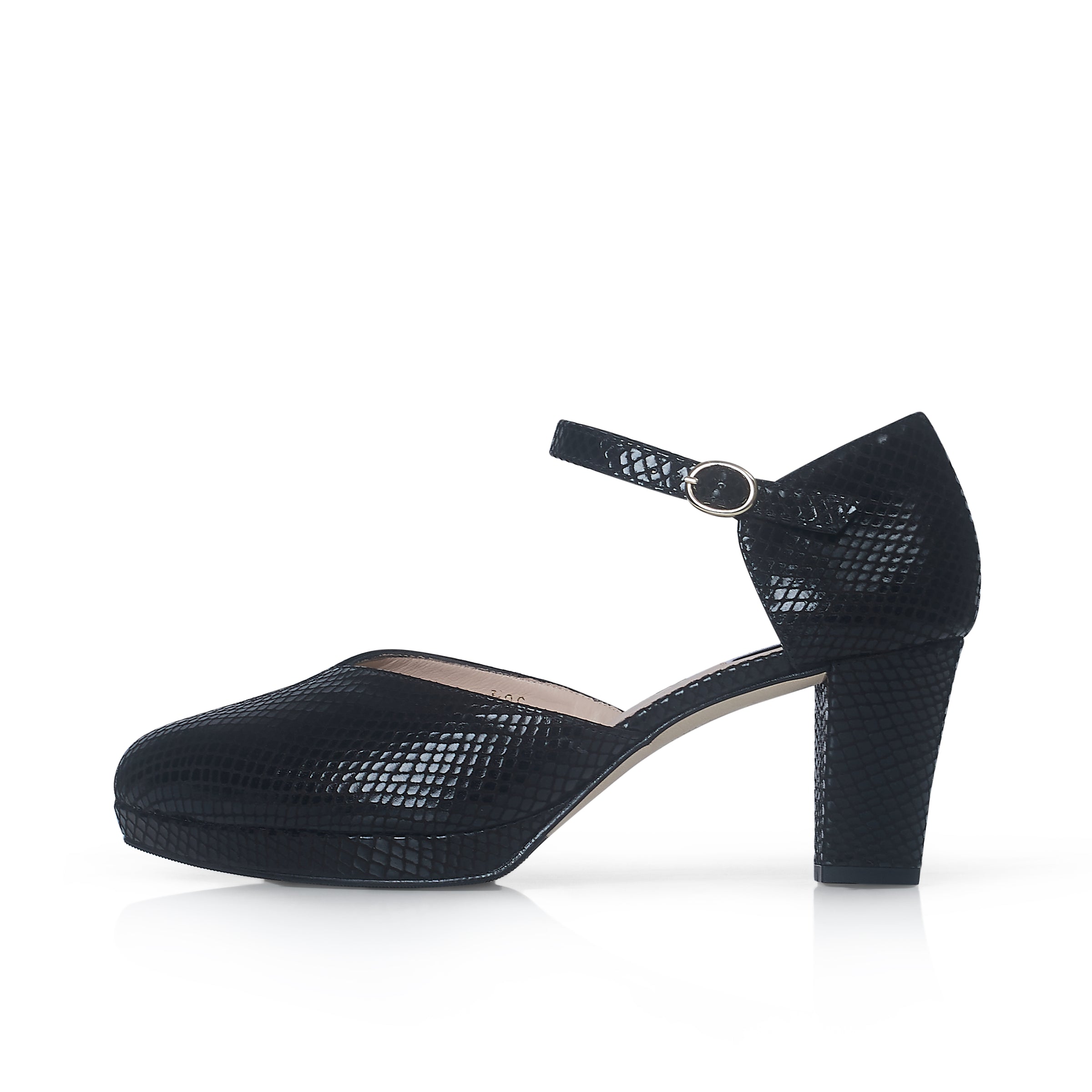Mika Wide Fit Platform Heels - Black Snake-Effect Suede